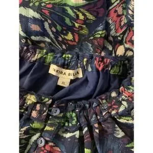 Yakira Bella Tiered Print Dress XL Multicolor Blue Print Flowy Boho