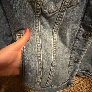 Levi's jacket with warm sherpa lining. Features a cream color inside with several pockets. Perfect staple piece for any fall/winter closet