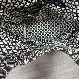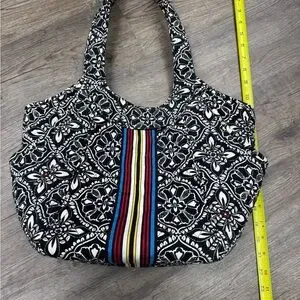 Black Vera Bradley Barcelona Tote - Black with stripe design on front note stain in pics
