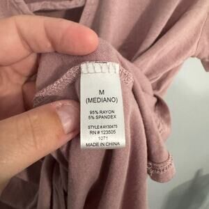 Heart & Hips Dusty Pink Choker Strap Neckline Top in Women's Size Medium. Short Sleeves, rayon & spandex blend. Top is in good used condition with no flaws or stains other than some minor wash wear. Please see close-up pictures for condition details.