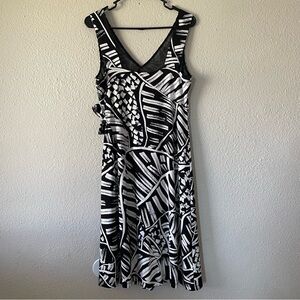 Nic + Zoe Moonlit Palm Dress Women’s M Black White Printed V Neck Lined Resort