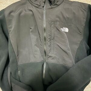 Classic black outerwear by The North Face. Iconic logo on the front.