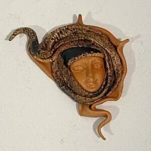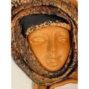 VTG Art to Wear Brooch Mexican Hand tooled Soft Leather Profile,Face, Pin,Ethnic