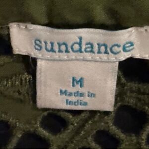 Elegant forest green midi dress with intricate lace design. Features button front and waist tie. Perfect for any occasion.