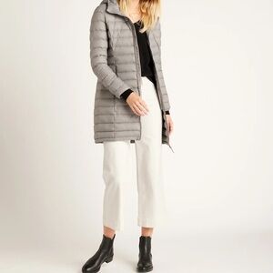 Quince Gray Hooded Puffer Coat Lightweight Down Long Jacket NWT small
