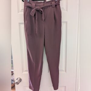 High waisted ankle-length paper bag pants from Express. Brand new with tags. Size 8, fits TTS. Color is mauve/taupe/dusty rose
