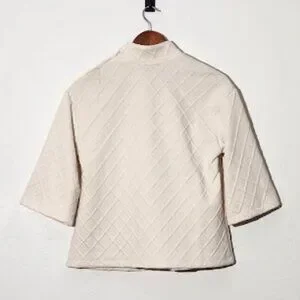 The Sunday in Brooklyn (Anthropologie) Women's 3/4 Sleeve Mock Neck Sweater in Size Small is a stylish and versatile piece perfect for various occasions such as weddings, parties, casual outings, and business meetings. The solid white color and classic design make it a timeless addition to any wardrobe. Made from a blend of polyester and spandex, this sweater offers a comfortable and flattering fit with a hint of stretch. The bell sleeves and mock neck neckline add a touch of sophistication to this pullover sweater, ideal for the winter, fall, and spring seasons.