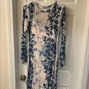 Express Blue and White Floral Long Sleeve Dress size Small worn once