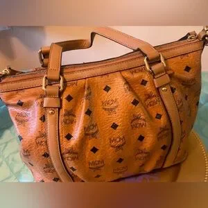 MCM Visetos Medium Essentials Shopper Tote Cognac