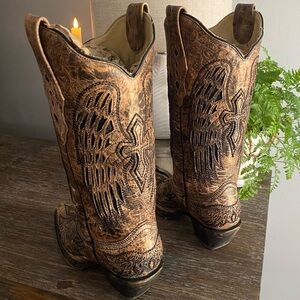 CORRAL Distressed Leather Cross Wings Glitter Cowgirl Cowboy Western Boot 8 Tan