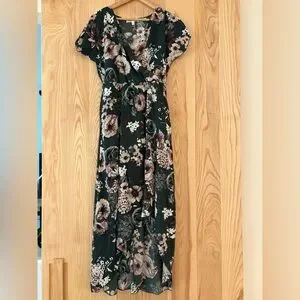 Wren & Ivory boutique elegant floral faux wrap dress.