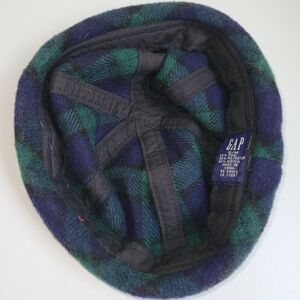 Gap 90s Women's Green/Blue Plaid Wool Roll Edge Beanie