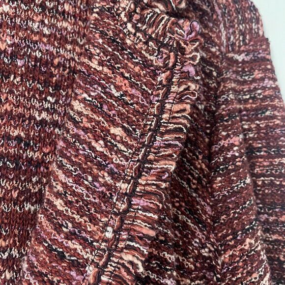 CHICOS Size L (2) Marked Fringe Trim Sweater Blazer Burgundy Pink Pockets