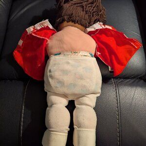 an Italian beauty born 1st September, in excellent condition with original Xavier Roberts signature on bottom! Features black yarn hair, brown eyes, removable red lace dress, and additionally a Cabbage Patch diaper. Includes rare Italian 'Certificato di Nascita' from Campo Incantato. No box, but—a collector’s dream!