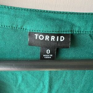 Green Babydoll Stretch Challis Zip Front Torrid Tunic Casual Top 0 (L) #1861