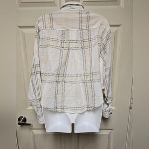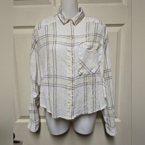Free People Beige Plaid Cropped Batwing Long Sleeve ButtonUp Shirt SzXS