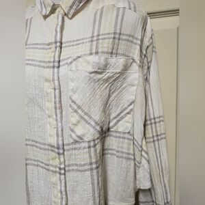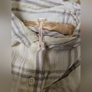 Free People X-Small Beige Plaid Cropped Batwing Long Sleeve ButtonUp Shirt