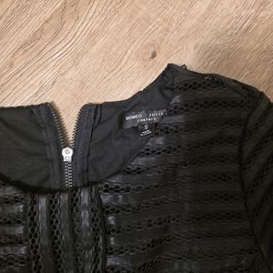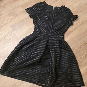 Chic black mini dress with textured stripes. Perfect for stylish outings.