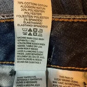 Stylish boot cut jeans by Lucky Brand. Dark blue hue. Comfortable fit for everyday wear.