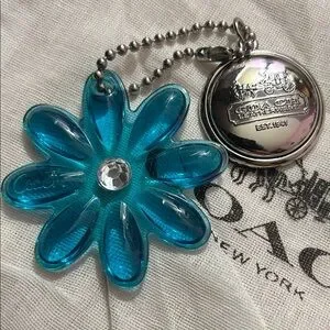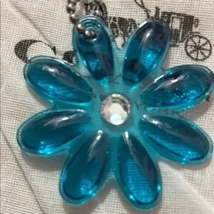 Coach Teal Lucite Daisy Keychain with Silver Coach Medallion in EUC