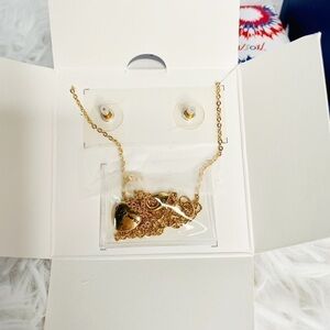 Betsey Johnson Gold Tone Ice Cream Cone Necklace and Lip Stud Earrings