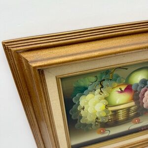 Vintage Original Still Life Basket of Fruit Grapes Painting Framed Signed 8x10