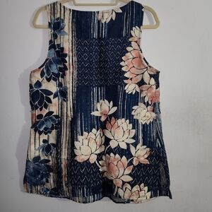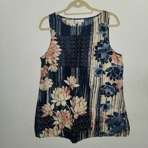 J Jill Pure Jill Petite Medium Sleeveless Tunic Top Lotus Floral Blue Pink