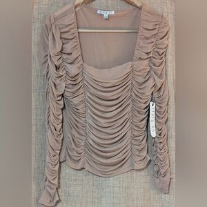NWT Anthropologie Ruched Pink Beige Blouse Long Sleeves Women's Size Large