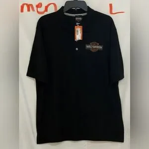 Sleek black polo with Harley-Davidson logo. Ideal for casual wear.