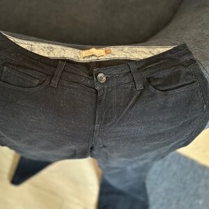 Paige Premium Denim black Benedict Canyon classic rise / classic bootcut cords - Size 29. Gorgeous deep and rich black vintage cords, Benedict Canyon boot cut, long length jeans from Paige Premium Denim. Brought stretch and comfort, super soft narrow pinwale cords. Traditional 5-pocket design, button and zip fly, impeccable tailoring built to hug and accent curves. Classic Paige pocket design. Excellent condition, worn once or twice. Easy, versatile add to your wardrobe! 99% Cotton, 1% Lycra Rise - 9 inches front, 11 inches back.