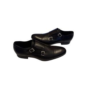 Keywords: Massimo Matteo, monk strap, men's dress shoes, black leather, double buckle, formal shoes, business footwear, closed toe, size 13, new in box.