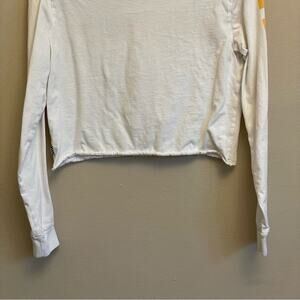 VANS S long sleeve crop top street wear urban white blue raw hemline race