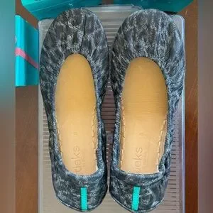 Rare 💥limited edition💥 pattern, versatile ballet flat in a gray and black leopard print & the classic turquoise blue tiles soles. Size 8, only worn a couple