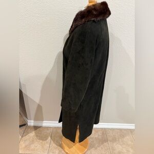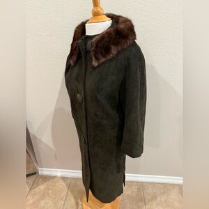 Vintage Coat Women’s S/M Suede With Mink Fur Collar Chocolate Brown 3/4 Sleeves