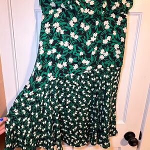 ANN TAYLOR GREEN MIXED FLORAL FLARE DRESS SIZE 8
