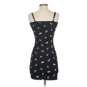 Divided X H&M Black Coquette Ribbed Butterfly Mini Dress Y2K Revive Grunge S
