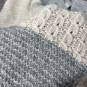 LOFT Sweater Womens Large Fuzzy Wool Gray Beige Cream Colorblock Patchwork