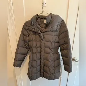 Chic and cozy puffer jacket. Has been lightly worn, has a few stains shown in the last photos and may have other signs of light wear and tear. Size M. Remains in good used condition - I have not tried to remove the stains pictured.