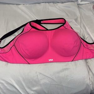 Stay supported in style with this Victoria’s Secret VSX Hot Pink Sports Bra in size 36DDD. Designed with a fun confetti print and mesh trim, this bra blends fashion and function for high-impact comfort.