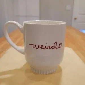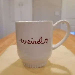 OPALHOUSE BRAND. Enjoy your favorite beverage with this stylish white mug featuring a playful 'weirdo' design. Perfect for that silly friend.