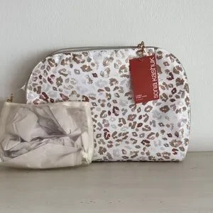Sonia Kashuk White and Brown Animal Print Cosmetic Bag