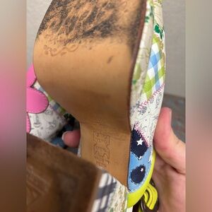 John Fluevog Picnic Riverdale Patchwork Slingback Platform Heels Size 8