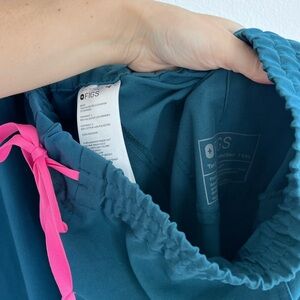 Figs Teal Pants with Pink Drawstring