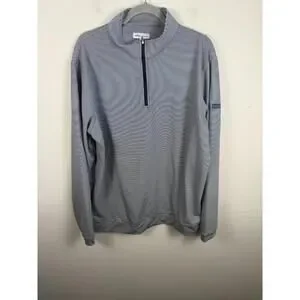 Peter Millar Perth Sugar Stripe Performance Golf 1/4 Zip XL Cottage Blue White