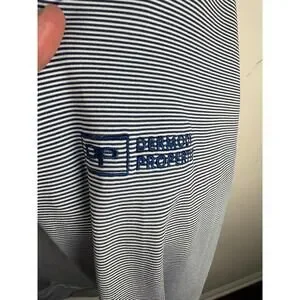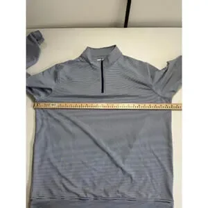 The Peter Millar Perth Sugar Stripe Performance Golf 1/4 Zip XL in Cottage Blue White is a stylish and versatile sweater designed for the modern man. Made from a blend of polyester and spandex, this sweater offers a comfortable fit with a classic style. The striped pattern, collared neckline, and 1/4 zip detail make it perfect for a variety of occasions, from casual wear to workwear or even a party. The moisture-wicking and breathable features make it ideal for active pursuits like golf, tennis, walking, or hiking, while its lightweight fabric ensures you stay cool during warmer seasons.