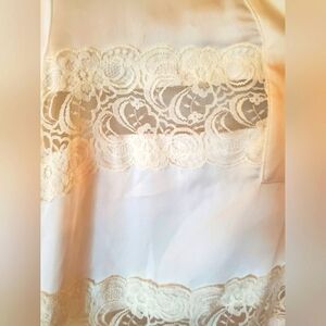 Beautiful Dana Buchman silky satin, Ivory top in great shape. Billowy sleeves and soft lace with a V neckline. Long Sleeves roll up.