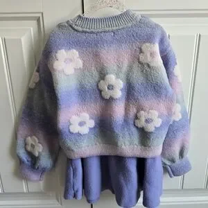 Soft knit sweater with a blend of pastel hues. Perfect for cozy days. skirt included. gently worn. no tears or stains.