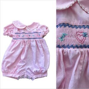 Vintage Allison Ann Baby Girl Embroidered Pink Hear Shortsleeve Romper 18M
