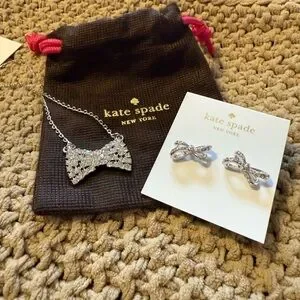 Kate Spade New York NWT Sparkling Bow Pendant Necklace And Earrings Set.