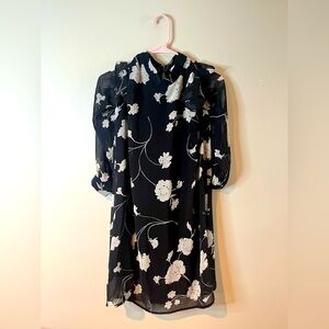 Le Lis Black Floral Long Sleeve Cold Shoulder Mini Dress